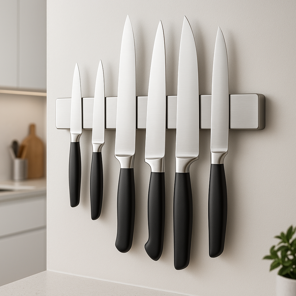 Unsere Magnetischen Messerhalter dürfen in keiner Küche fehlen. Gefertigt aus hochwertigem Edelstahl gehören Sie zur Grundausstattung einer jeden Küche.