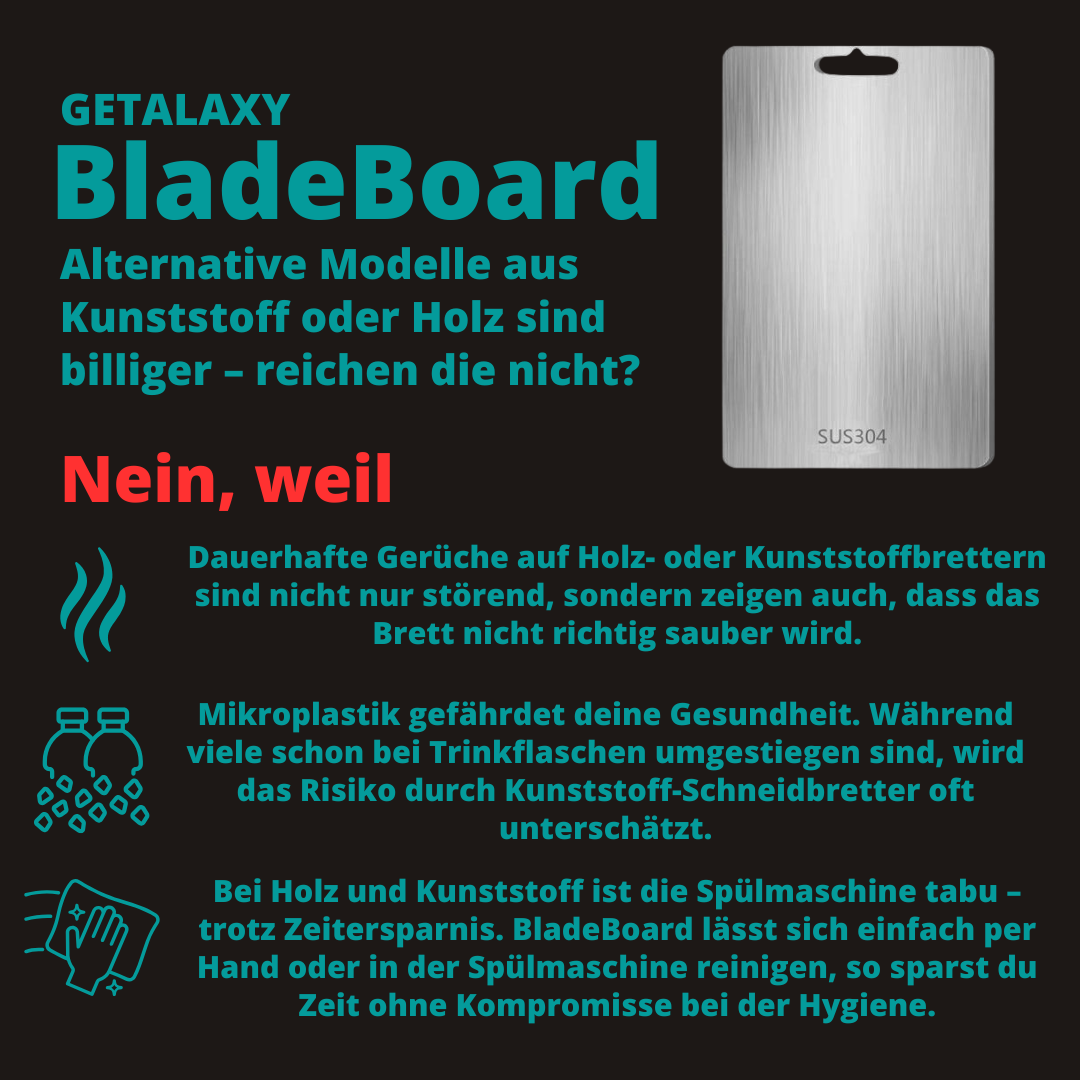 Robuster Edelstahl sorgt für Freude bei der Zubereitung von Speisen. Hygienisch rein und immer Geruchsneutral. Besser als Kunststoff, besser als Holz.